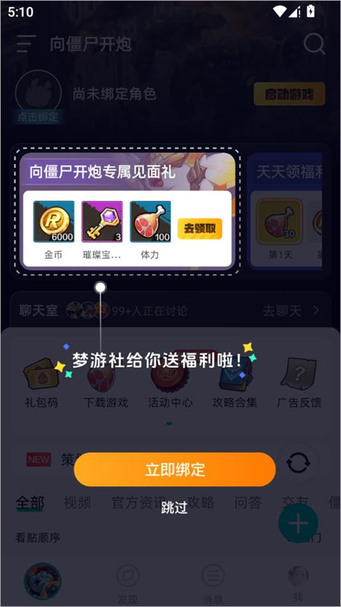 快速上手:如何绑定《向僵尸开炮》账号