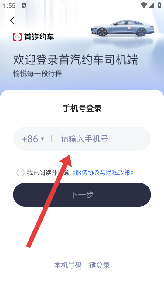 3、审核通过后,在登录页输入已绑定的手机号,完成短信验证,即可正式启用司机账号。