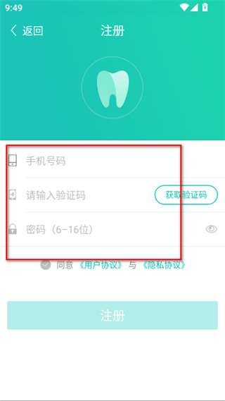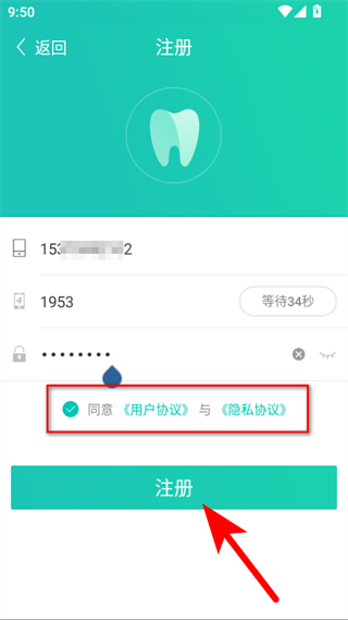 3、勾选《用户协议》与《隐私政策》,点击【注册】即刻开通专属账户;注册成功后可一键加入所在诊所,也可选择暂不绑定,后续随时添加。