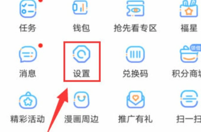 第二步:点击右上角【设置】图标 → 打开系统设置页;