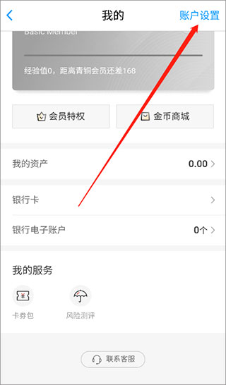 - 进入“我的账户”页面后,点击右上角【账户设置】;