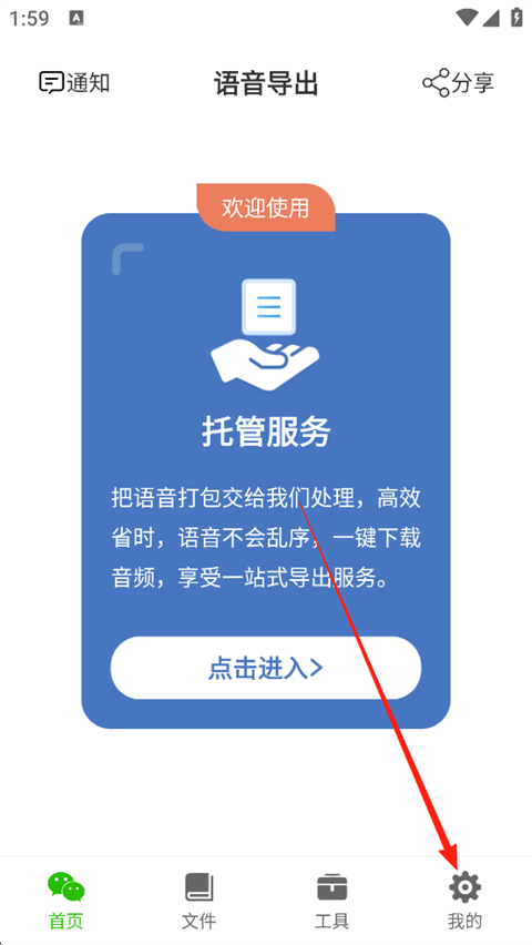 - 打开语音导出助理软件,点击底部导航栏中的【我的】。