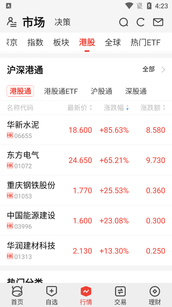 4. 开户成功后,返回首页点击“行情”模块,进入市场观察界面。