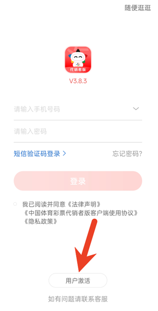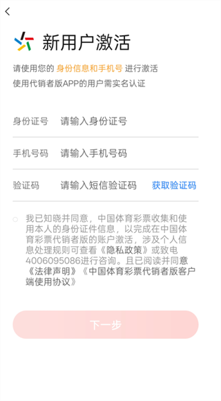 1. 若您为中国体育彩票官方授权的代销者,且身份证与手机号已在官方系统登记为本人使用,请打开App后点击底部“用户激活”入口,进入账号激活页面。