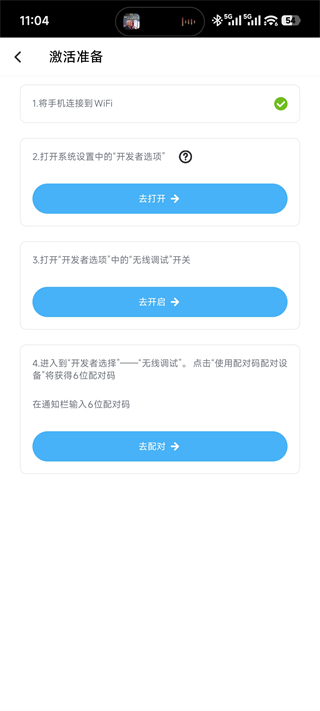 3、完成以下准备工作:确保手机与电脑连接同一WiFi网络,开启“开发者选项”,并启用“无线调试”功能。