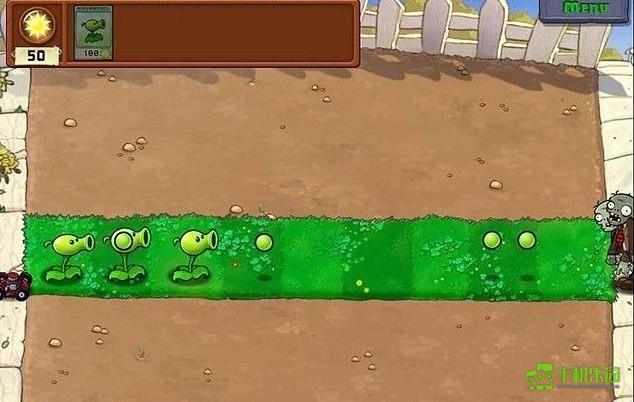 本关为新手引导阶段,仅有一条进攻路径。开局专注收集阳光,优先在第二列及之后位置部署豌豆射手,切忌将植物种在最右侧——那里是僵尸现身区,盲目抢种等于主动送人头。