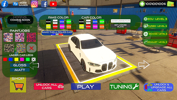 2、进入调校工坊,可对悬挂硬度、差速器锁止率、胎压数值进行微调,亦能加装碳纤维扰流套件、升级双涡轮增压系统,甚至重设ECU程序映射。