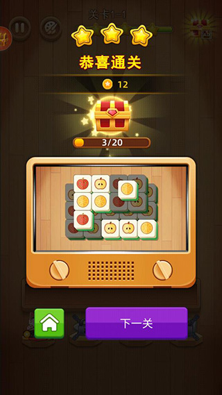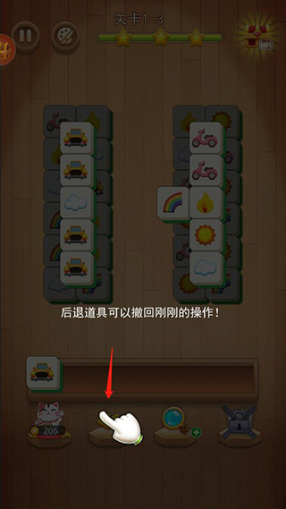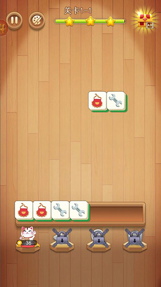 操作方式:点选任一方块,它会自动滑入展示栏末位,满三同图即触发连锁消除;
