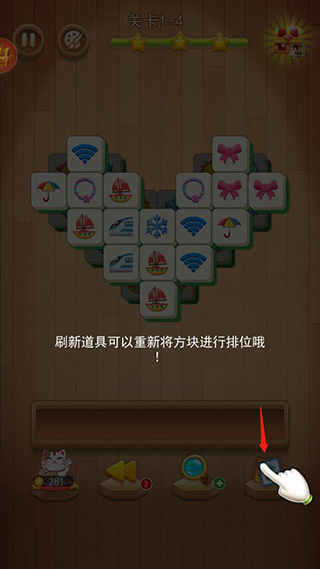 刷新功能打乱当前可见方块位置,但保留已清除区域状态,策略性使用能打破僵局;