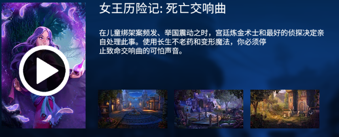 本作共设二十重境域,摒弃传统“找钥匙→开门”单点循环,转为任务导向型结构:每关明确交付一个核心目标,雪茄盒、星辉宝石、巫师手杖、龙母蛋……道具既是通关凭证,也是剧情支点。关卡命名自带叙事引力,从“黄昏”到“黑色纪事”,从“无尽传说”到“女王历险”,风格横跨民俗奇幻、 noir侦探与炼金寓言,构成一张彼此呼应的神话拼图。