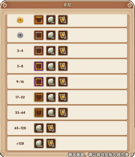 奖励结算 每轮淘汰结束后,当日18:00统一通过邮件发放对应奖励。未设置防守阵容的成员无法领取,奖励内容含大量钻石、稀有材料及全新道具——皇冠皮肤兑换券,可在公会商店限时兑换限定外观。