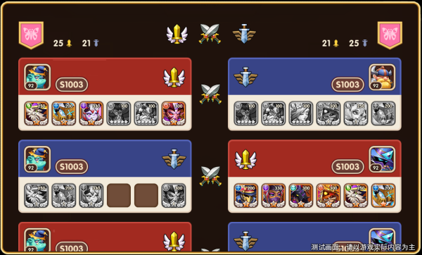 【阵容编排】 战斗前需手动配置上阵英雄与魔兽助战单位。每位英雄可自由拖拽至五格战场中的任意位置,前排承伤、后排输出、侧翼干扰——站位变化直接影响技能覆盖范围与生存时长。魔兽选择同样关键,它能提供额外减伤、回能或控制效果。