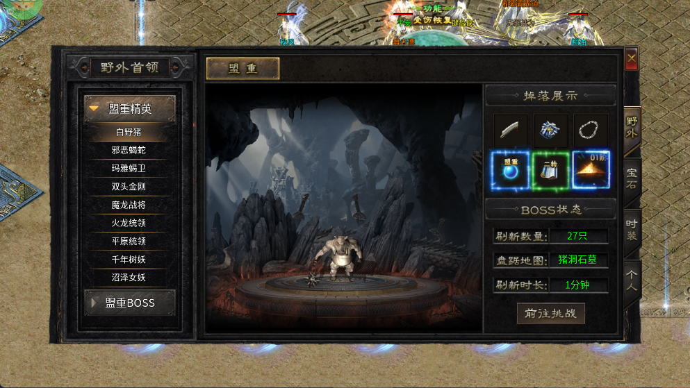 深入盟重区域挑战精英守卫与BOSS级怪物,掉落橙装、特戒、高阶武器,换下初始白装,战力跃升一步到位。