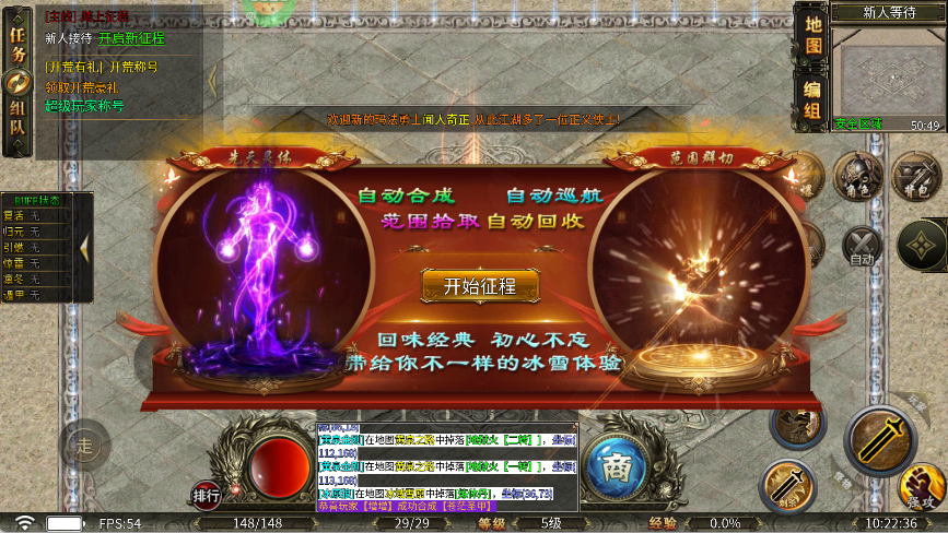 进入游戏点击“启程”按钮,自动功能立即生效,怪物倒地瞬间装备自动入包、垃圾自动粉碎、材料自动合成,全程无需手动点选。