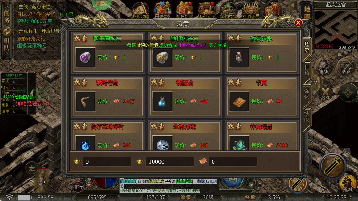 金币能换回城卷轴、治疗宝珠碎片、耐久修复剂等实用道具,刷图不跑腿、不死机、不断档。