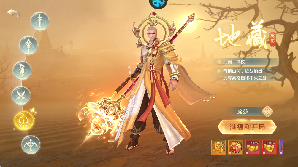 持镇岳禅杖镇守一方,近身轰击附带震荡波,打断敌人动作并降低其命中。濒死触发“不灭金身”,短时间无敌且反击造成真实伤害。