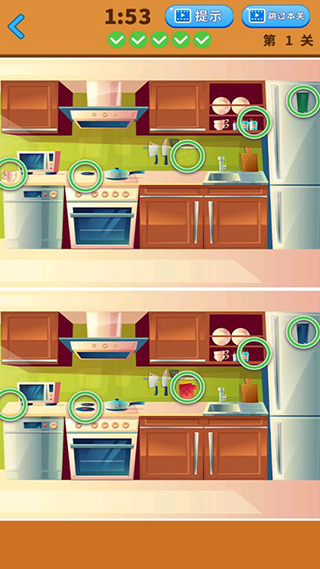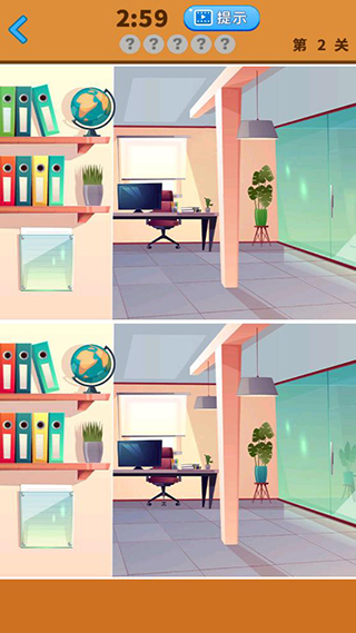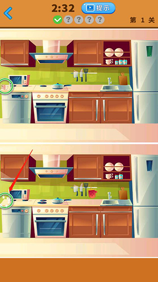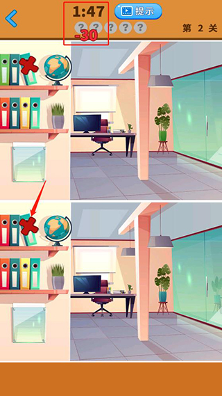 9、卡关时点击顶部提示按钮,系统会在图中闪烁一次关键差异区域;