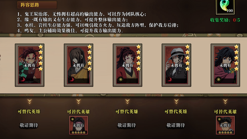 阵容成员:鬼王炭治郎+鬼舞辻无惨+继国缘一+炭十郎+产屋敷耀哉