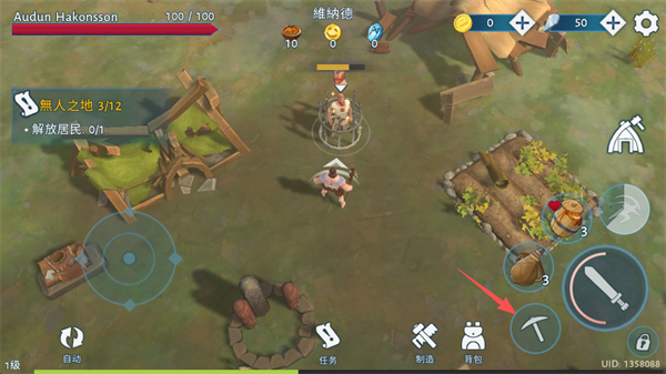 发现被困居民后,点击右下角石镐图标,一下、两下、三下凿开冰封的岩壁,把人拉回阳光之下。