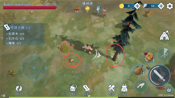 深入林区伐倒松树,蹲身敲碎裸露岩脉,挥镰割净缠绕屋基的荆棘藤蔓,把资源一捆捆扛回营地。