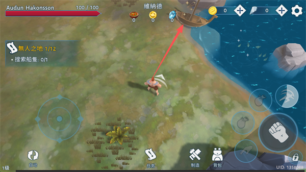 游戏开局即置身于搁浅的长船旁,脚下是未被标记的雪原。跟随界面微光指引靠近船体,踏出探索的第一步。