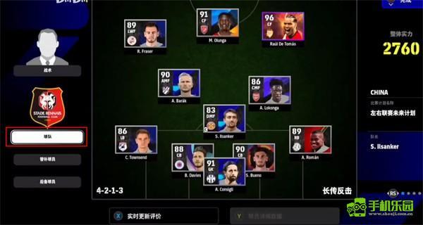 3、“比赛计划”页面下点击“球队”,即可调出动态战术板——拖拽球员图标调整站位,滑动滑块设定压迫强度,长按技能图标激活特殊指令,战术不再是静态模板