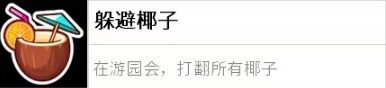 三次游乐园任务里,任意一次把椰子摊所有椰子扫落一地即可。不用全图找,盯紧一个摊位猛冲就行。