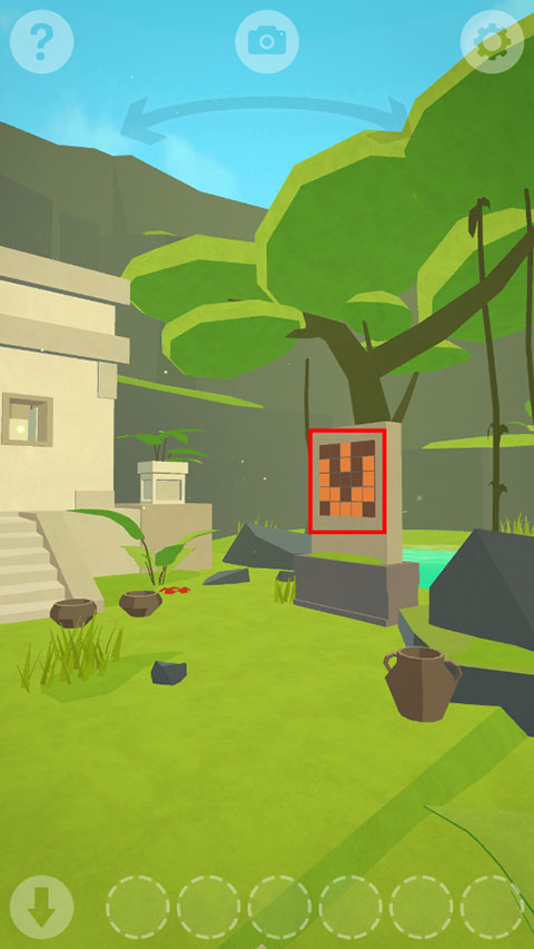 4、移步左侧同款石壁前,点击方格调整纹样,使两侧图腾完全一致,中央巨门随即开启;