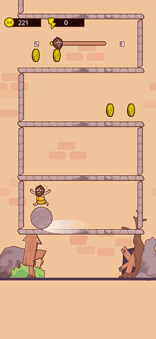 关卡中散落着丰富多样的互动道具——可推动的石块、可踩塌的木板、能反弹的弹簧、临时生成的浮台……它们不是装饰,而是通关钥匙。你需要快速识别道具功能,在高速移动中预判地形变化,甚至主动改造路径:推石填坑、踩板借力、反弹跃高,让每一次决策都影响后续走势。