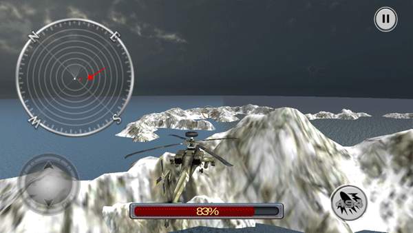 ? 拟真飞行系统:基于真实阿帕奇飞控逻辑设计,支持俯仰/偏航/滚转全向机动,配合重力感应+虚拟摇杆双操作模式,实现低空贴地突防、急跃升规避、悬停锁定等专业动作。