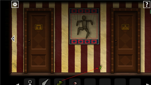 2、进入大厅后点击柜台,将票交给木偶服务生,右侧暗门随即开启。