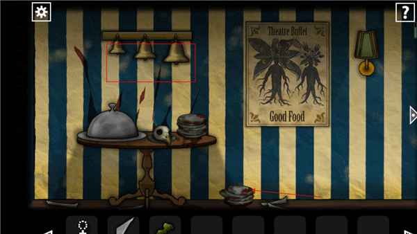 5、按序列「2-1-3-1-1-2」点击上方铃铛,解锁下方餐盘,取得「眼球」——数字逻辑+听觉反馈双重验证。