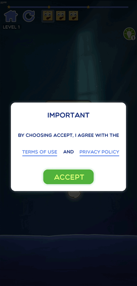 2、进入引导页后,轻触【ACCEPT】立即进入首关教学;