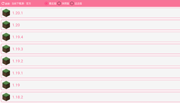 2、从列表中选择目标版本(如1.12.2、1.16.5、1.20.1等)
