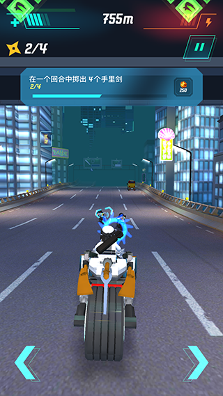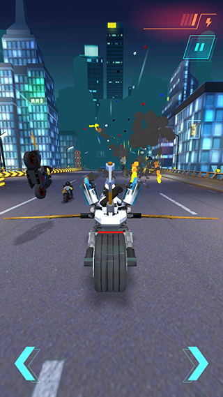 游戏采用“跑酷+战斗+载具操控”三重融合机制:摩托车不仅是代步工具,更是战斗延伸——三种专属机车、六把特性迥异的武士刀、多类战术道具(如电磁脉冲、时间缓速、能量护盾)均可解锁;而真正决定成败的,是你对车身平衡的预判、对攻击窗口的捕捉、对地形障碍的闪避节奏。这不是“自动闯关”,而是需要真实手眼协调的指尖战场。