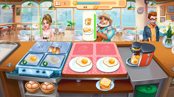 作为餐饮新人,你将从最基础却最具烟火气的「早餐区」起步:制作金黄酥脆的煎蛋吐司、现榨清甜橙汁——只需轻点食材图标,系统自动执行烹饪流程;紧盯左下角进度条,及时收锅出汁,避免烧焦扣分!