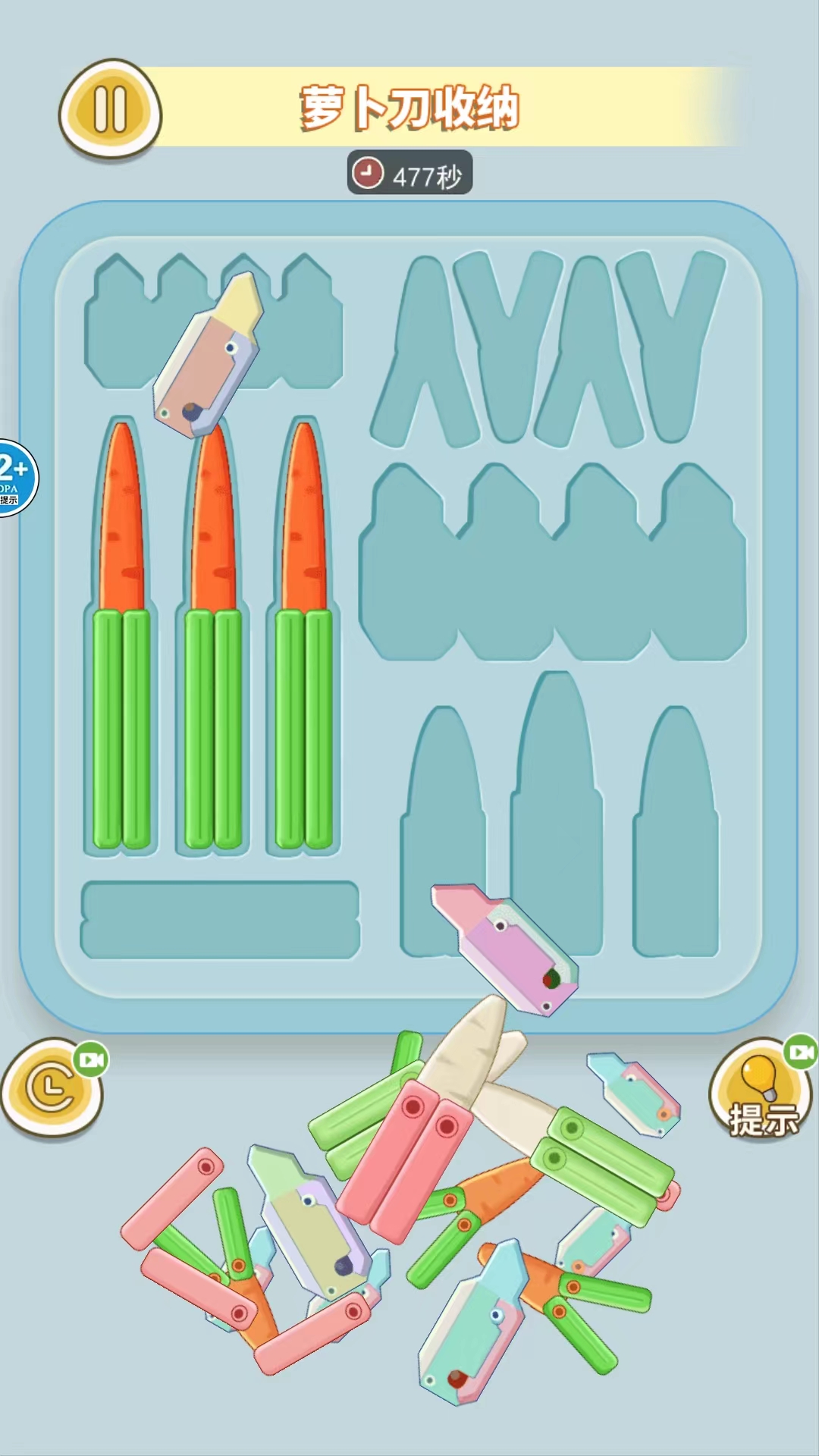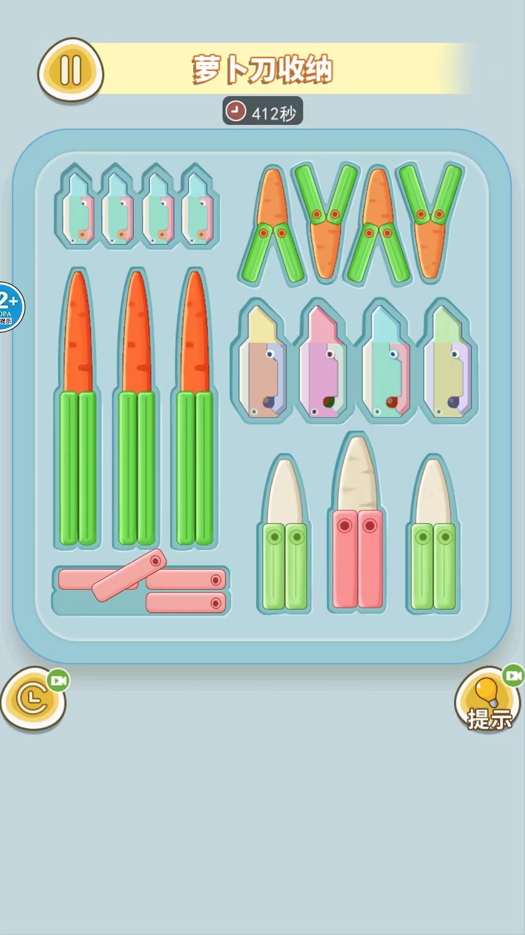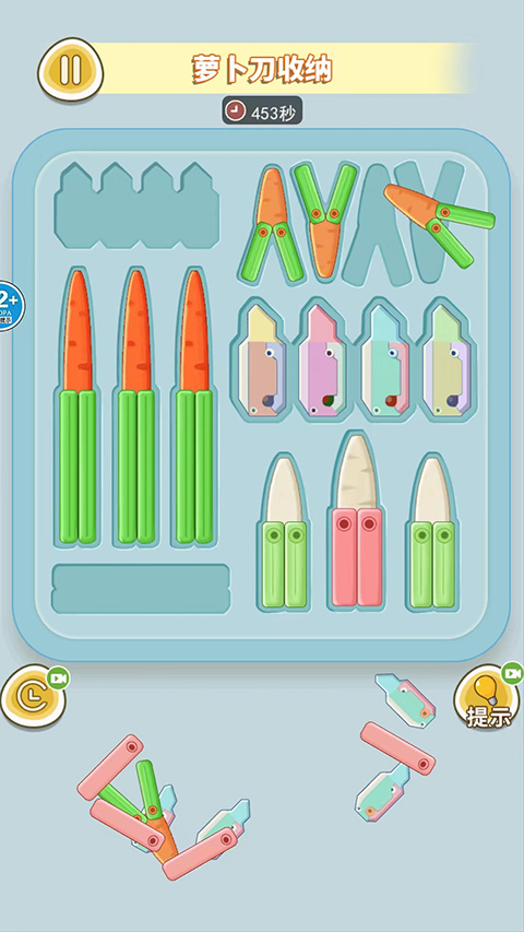 ? 真实还原收纳逻辑:每把萝卜刀都拥有独一无二的轮廓与比例,每个收纳盒均按真实尺寸建模,考验你的空间判断力;