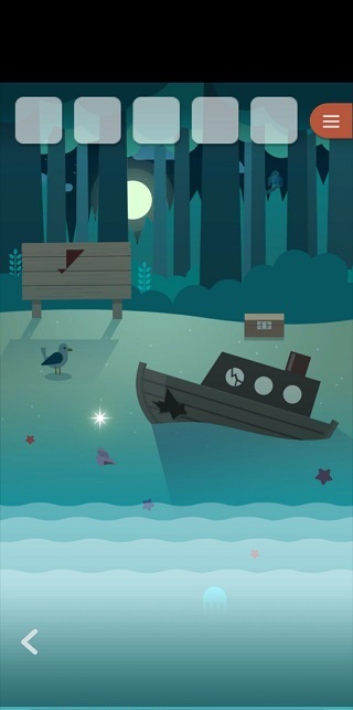 分叉口右行遇羊→用石头持续点击触发狐狸→得新【木板】→小青蛙与大青蛙共鸣生成音符→将木板置于首音符位→按色彩序列解谜→取得【医疗箱】→救治仙鹤→庙前小鼠索要【奶酪】→返程以灯照亮船洞获取;