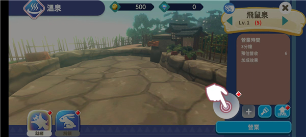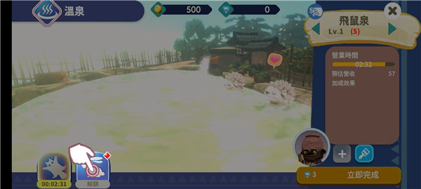 3、点击首个温泉池,指派专属物灵(如拉鲁利马),确认启用后——注水启动,自动营业!