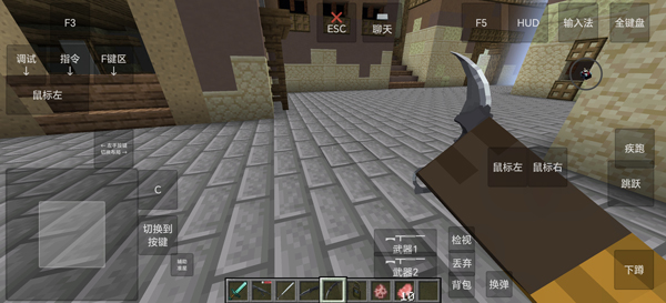 5、采用标准FPS操作:左侧虚拟摇杆移动,右侧滑动视角,鼠标左键射击,右键开镜;