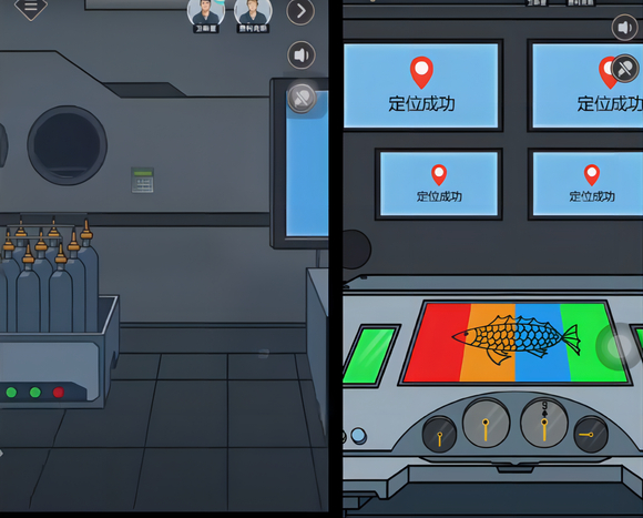 左右密室独立探索、交叉验证,全程无提示、全靠逻辑闭环。从旗语表破译潜望镜坐标,到地图碎片拼合海域编号;从操作台颜色对应字母密码,到鱼形板块数量映射四位数锁码;最终以“shipwrecks”旗语口令激活救生梯——每一步都需精准还原物理空间逻辑与符号转译规则,是烧脑玩家检验推理纯度的终极试金石。