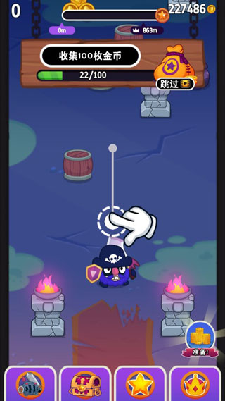 甩甩大冒险(Sling Smash)是一款画风Q萌、节奏轻快的弹射类休闲益智手游——没有复杂操作,仅靠指尖点划即可操控角色荡绳飞跃;没有冗长剧情,却用密集的机关陷阱、诡谲的暗黑角色与不断升级的关卡设计,带来“一玩就停不下来”的街机式爽感。精美写实的UI界面搭配高自由度的收集养成系统,让每一次弹射都充满策略与惊喜。