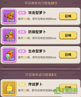 消耗不同品类萝卜,定向召唤刀疤兔——掉落物精准对应远古装备锻铸材料;萝卜使用次数与挑战上限均按周重置(每周一5:00),策略规划更显重要。