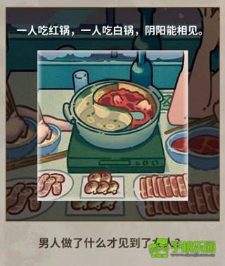 答案:点击桌上的火锅,一人吃红锅,一人吃白锅,阴阳能相见。