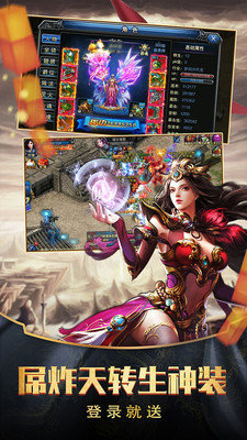 海量神装、稀有坐骑、炫酷翅膀任你挑选,大招一键释放,视觉与手感双重暴击。打宝体验极致爽快——BOSS刚倒地,光束已铺满屏幕;小怪刷新即爆装,回收秒变金币雨。万人同图刷本常态化,世界BOSS限时降临,全服抢杀引爆激情。技术为王,人品称霸,真正的“谁强谁说了算”。