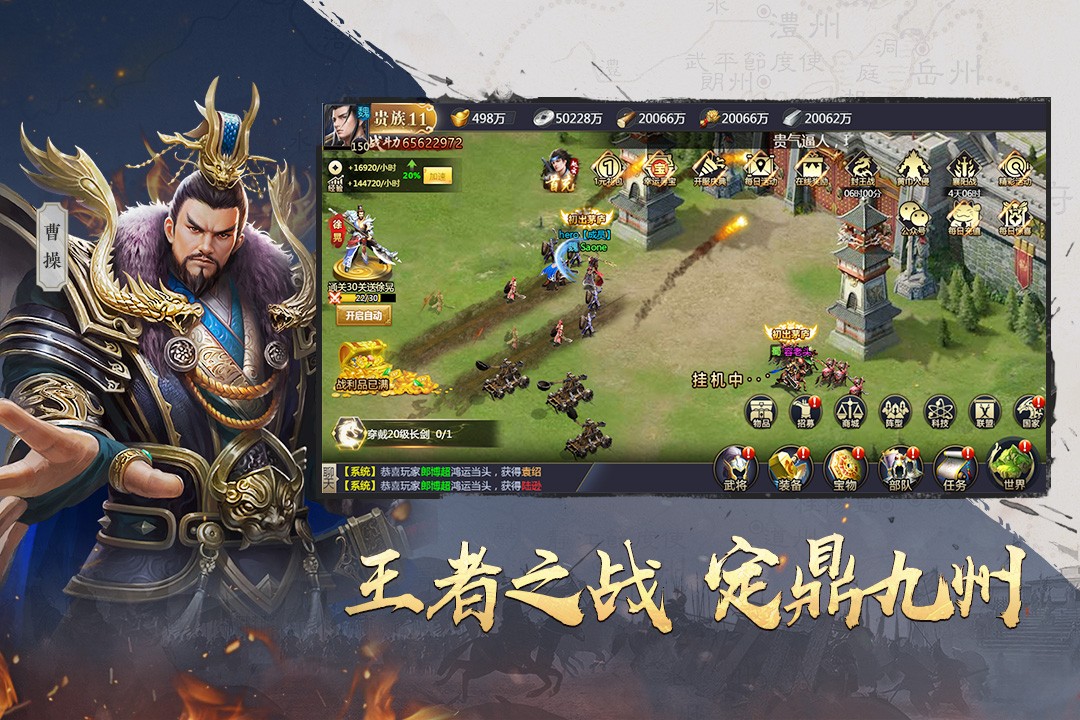 创新实时国战系统,支持多联盟跨服混战!争夺州郡、攻占王城、抢夺资源点,每场战斗皆为真实玩家对抗,无AI填充。内置「招贤系统」可实时邀请盟友参战,军师献策、武将突袭、奇兵埋伏——真正实现运筹帷幄之中,决胜千里之外。王位归属由战功实时结算,一将功成万骨枯,荣耀属于最强军团!