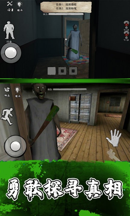 ???? 双BOSS差异化机制:奶奶靠听觉定位,爷爷靠视觉搜索——玩家需动态切换策略:静音绕行奶奶,制造噪音引开爷爷,真正实现“智取而非蛮逃”。