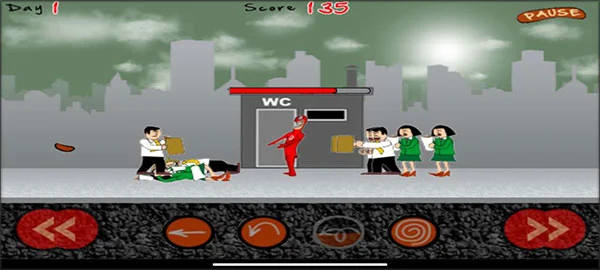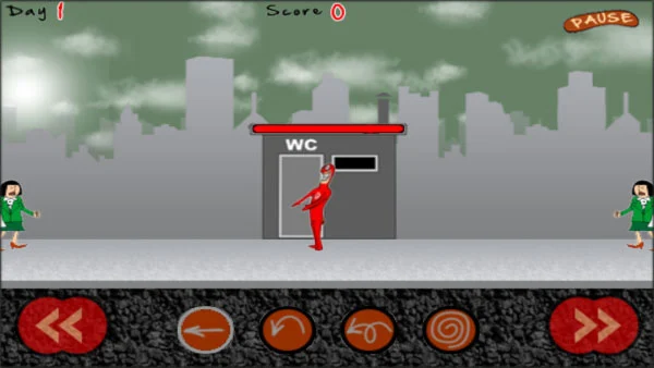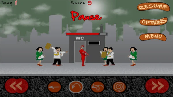 2、游戏开始后,左右两侧会陆续出现急于如厕的角色,你的任务是及时拦截,防止他们成功抵达厕所区域。