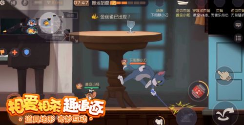 餐桌叉子能绊倒冲刺的对手,冰箱冰块可制造滑溜陷阱,墙上的相框一砸即晕,甚至奶酪本身都能当投掷武器……全场景散落超30种功能道具,全部源自动画经典桥段。没有冷却、无需充能,只有最原始的物理喜剧逻辑——找到它、用对它、笑出声!