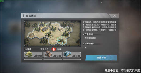 首次体验“特派行动”?进入章节后先预览任务目标与奖励→点击【开始行动】→自由编队或一键智能组队→专注探索进度与任务达成,地形格子仅为视觉呈现,操作零门槛,策略全在决策中!
